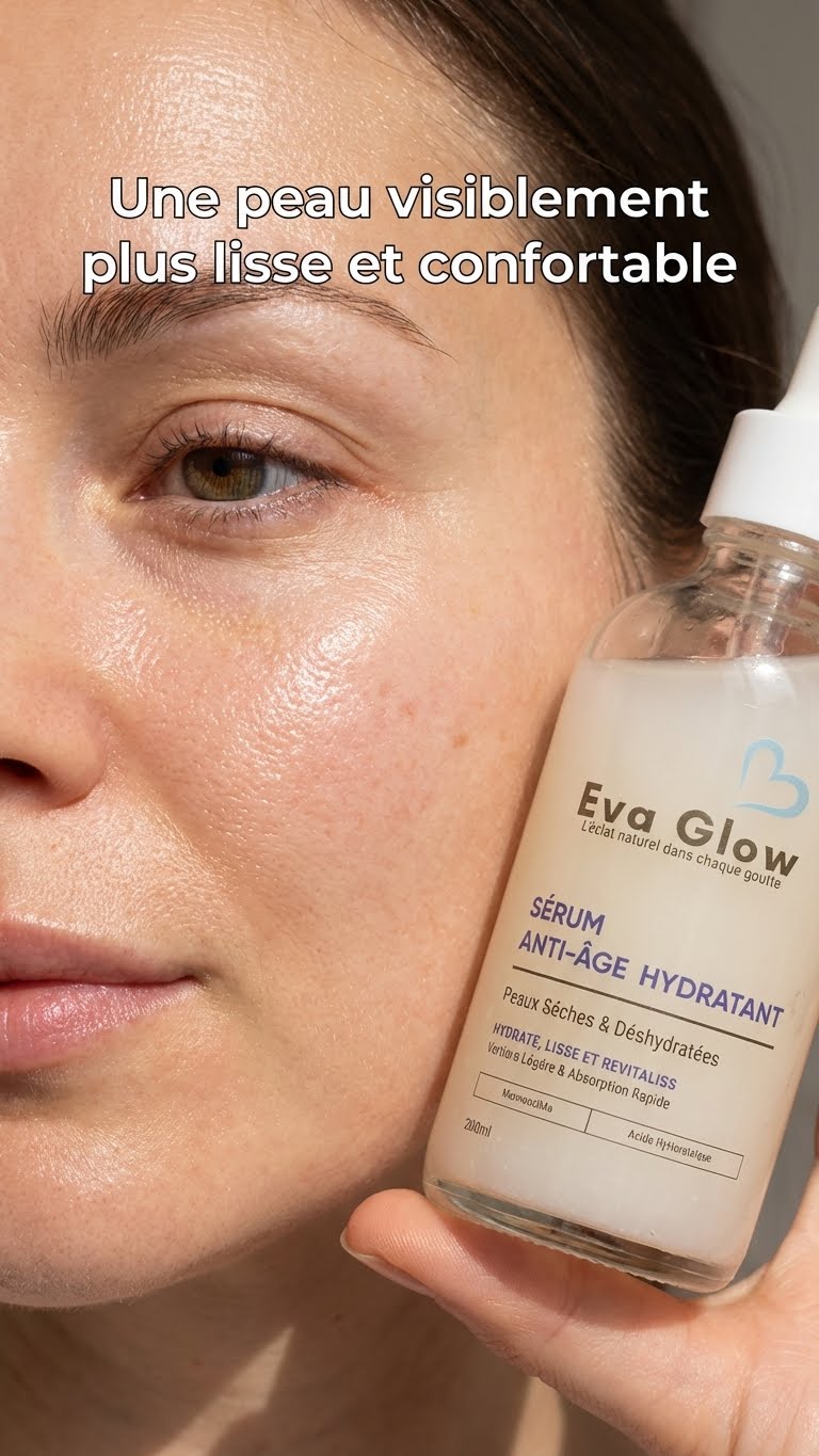 Le sérum EvaGlow est recommandé à partir de 21 ans, lorsque la peau commence à perdre progressivement en élasticité et en hydratation.